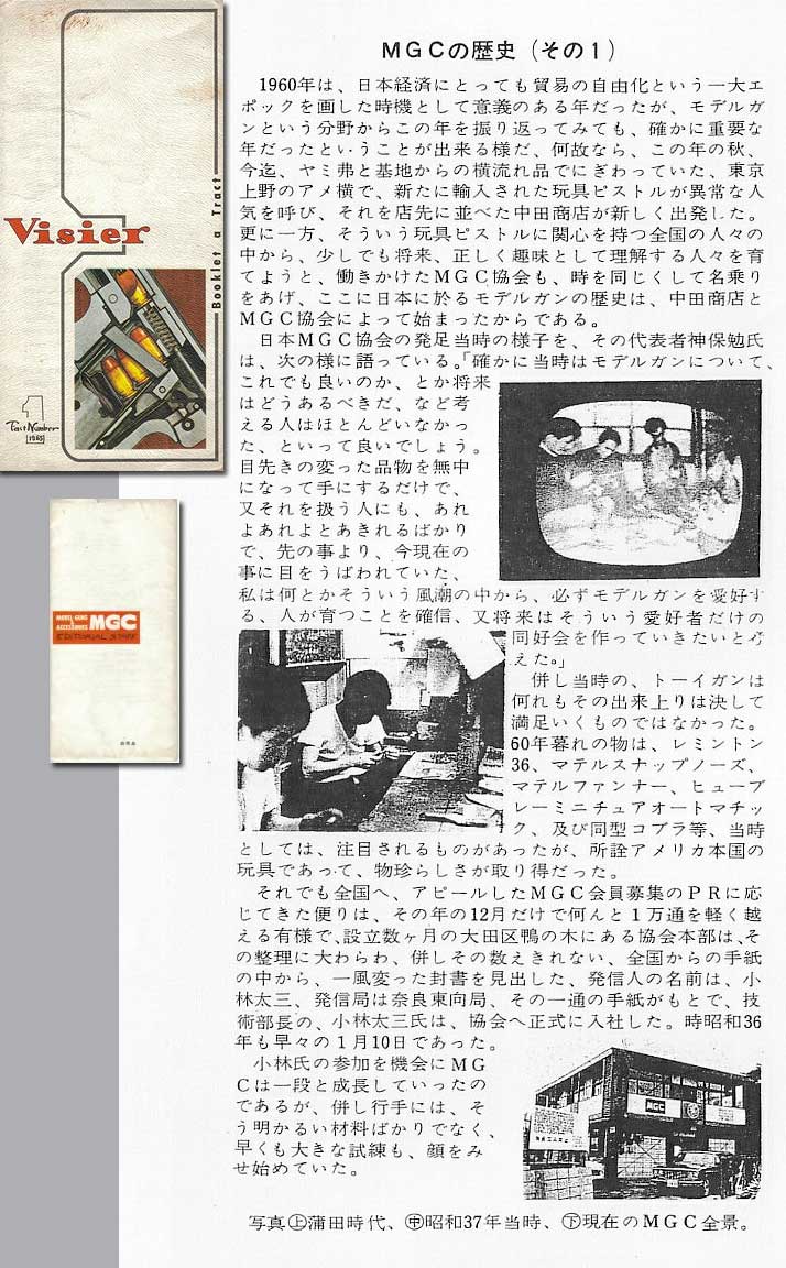 日本MGC 協会のスタートです。 おもちゃと実銃は完全に区別された別の物であるべきだという姿勢は、初期のころからの神保氏の一貫した主張でした。 氏の自伝「MGC をつくった男」を読むとGun 趣味のスタートが米国人のコレクションからのようなので、そのへんから実銃とトイガンは 完全に別物であるべきだとの感覚を得たのではないでしょうか?