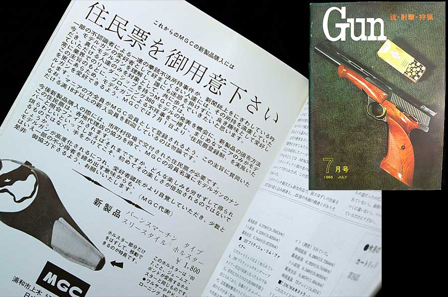その発売が待たれるなか、とんでもない広告が載ります。 1965年7月号のGun 誌にカラーで直営店ボンドショップ開設と住民票提出でなければ販売しないという方針の広告です。