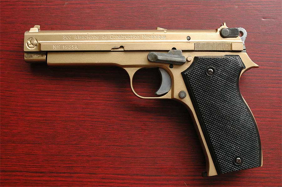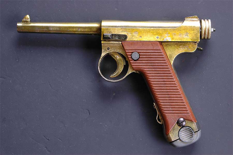 王冠マークは、本物の拳銃と見分けが付くように、目立つ位置にあり、白く塗られたりしていました。 新規の製品は、金型から王冠マーク付きで製作され、既製品にはスジ彫りされました。