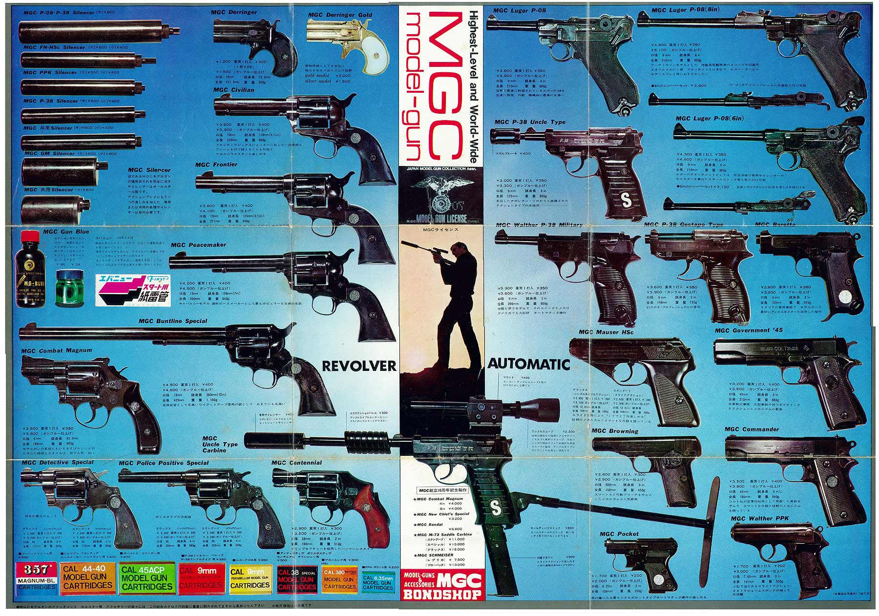 1965年11月号の広告を以ってMGC はGun 誌広告をやめます。したがってブローニングの後のモデル、センチニアルの広告ははガンマガジン(ベースボールマガジン社)に掲載されました。007の原作に出てくる銃ということで選ばれたようです。
