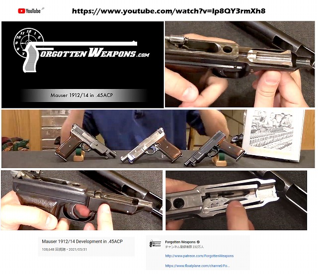 https://www.youtube.com/watch?v=Ip8QY3rmXh8素晴らしい動画が、ユーチューブに上がっていました。モーゼルのロック付き拳銃の試作品が3種紹介されています。 上の写真でいうと左下のロック機構なんか、フリッツワルサーさんの大いなる参考になったのではないでしょうか?