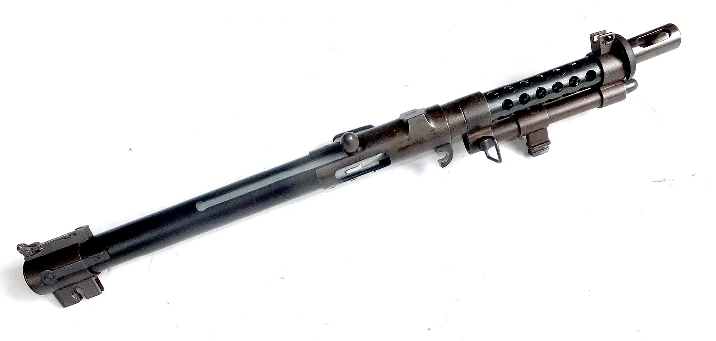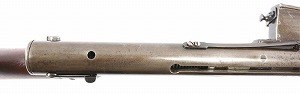 フルート加工のバレルがすごいですね。フレームにボルトの入る部分があるのにその上にバレルジャケットが被さるという2重構造は、まるで 南部式けん銃そのもののようです。