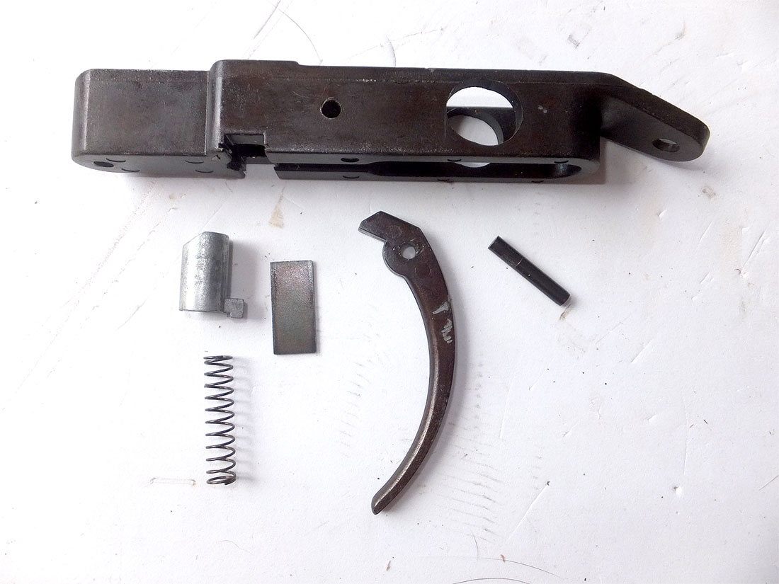 ほとんど同じ構造だと気付いたのでした(図では水色)。これには載っていませんが、イギリスのステンもそうです。みなトリガーからステーを介してシアにつながっています。