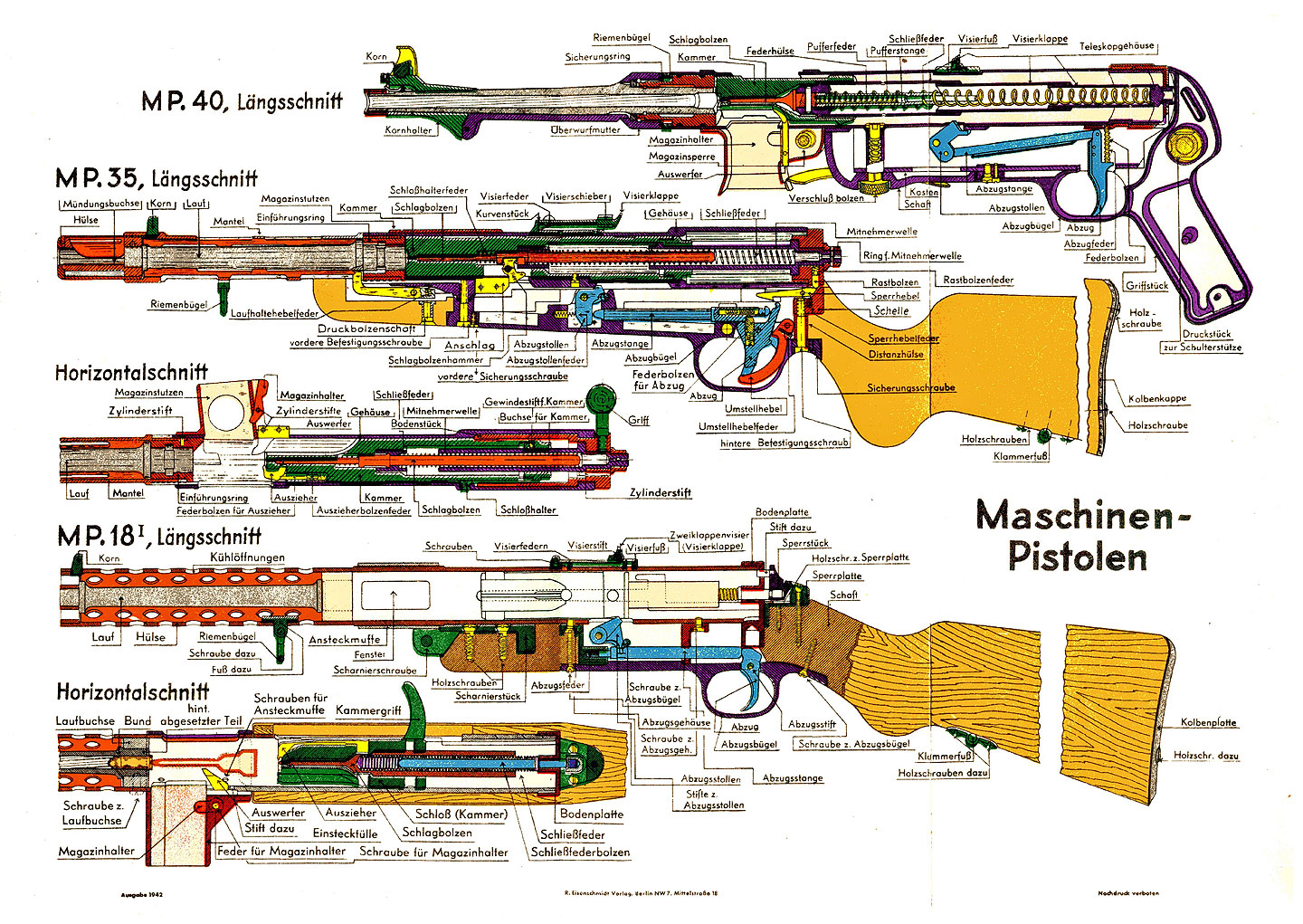 もともとドイツの警察本の断面図に見入った私は、これらサブマシンガンのトリガーからシアにかけては