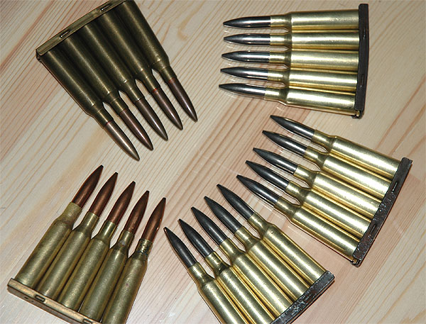 メッキ弾に付いているクリップは、鉄製のオリジナルである。 オリジナル弾頭と現代の弾頭は計測すると0.15mmくらい、今の方が大きいのだが 肉眼でもはっきりと判る。人間の目ってよく出来ている物だと感心する。