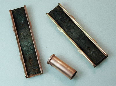 漬け込んだクリップは、旧日本軍の真鍮製のものだ。 |