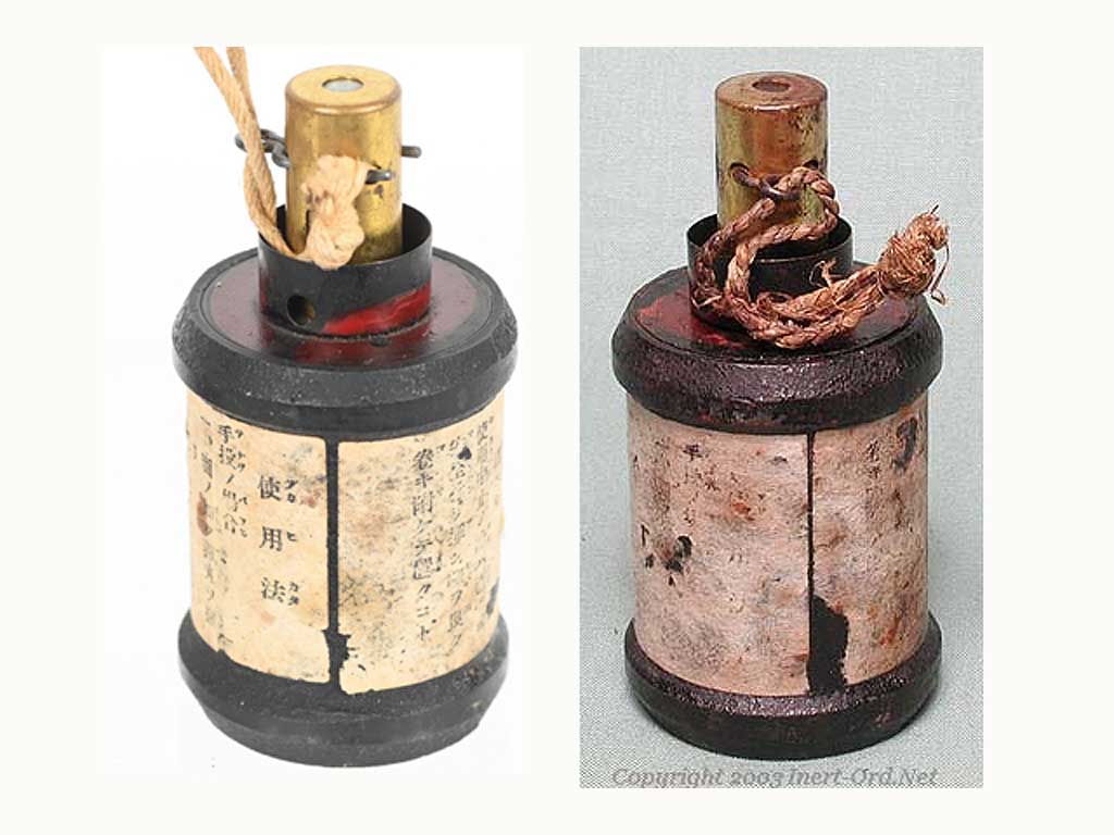 上と同じページから取ってきた写真ですが、日本軍の手榴弾は装薬を入れた時に蓋に赤いペンキを塗るようなので
