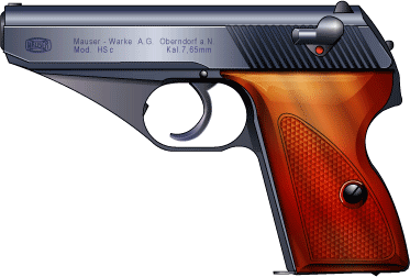 1937年、ドイツ、ストレートブローバック、コンシールド・ハンマータイプ。 HScとは、ドイツ語でダブルアクションを示す Hahn-lSelbstlspanner のc型という意味。 a,b型は試作のみ。 民間、警察、軍用に使用された。終戦まで25万丁生産された。 2次大戦後、1968年再生産され380口径が追加された。 戦後型はフレーム後端が別部品になった。