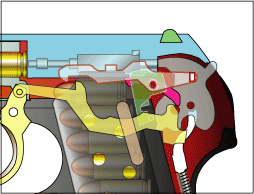 ここの仕組みについて たかひろ様 より教えていただきました。有難うございました。 なお、ディスコネクターは独立した部品であったが戦後型ではトリガーバーと一体になっている。