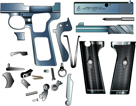 ウェブリー自動拳銃は陸軍には採用されなかったがコマーシャル版で.32ACP、.380ACP、.22 、.25ACP 口径などが