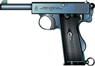 1904年に試作が出来上がり1912年に.455口径の軍向けピストルの完成を見る。
