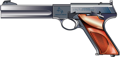 発売される。1927年から「Woodsman」と呼ぶようになった。 1976年まで65万丁売れた。手軽に打てる22口径で美しいスタイルは多くの賛同を得た。 共同設計者3名の中の一人は、かの有名なジョン・モーゼス・ブローニングである。 とびら絵は6.5インチバレル(最初はこのサイズしかなかった)。
