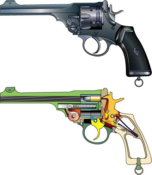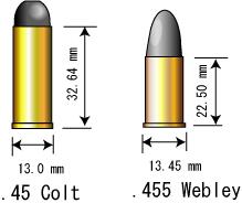 第一次世界大戦中の1915年採用。455口径、6連発、英国。 サイドプレートがない一体型フレームは製造しにくく1922年軍使用弾が38口径化された時に エンフィールドに敗れる。アラビアのロレンスも使用。 |