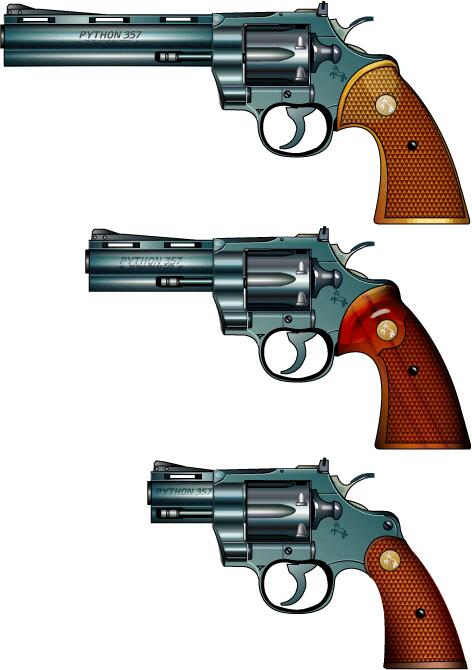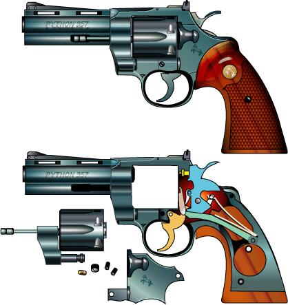 コルト社の最高の技術を結集して作られた一流品。357マグナム、6連発。 特に初期の製品は仕上げが素晴らしく評価が高い。価格もかなり高価だったため、 廉価版として口径を38スペシャルにし、機構も違うダイヤモンドバックが作られた。 精度良いパイソン銃身とS&W のフレームを組み合わせてスマイソンという カスタムガンも現れた。 1990年発表の44マグナム口径のアナコンダは外見こそ同じだが評判が悪い。 コルト社の衰退を象徴している。 |