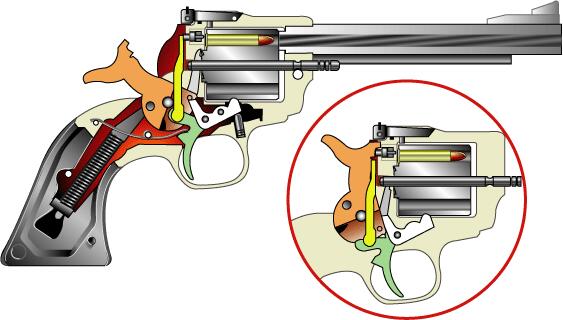 当初は騎兵用として片手発射のみ考え、ダブルアクション・オンリー。
