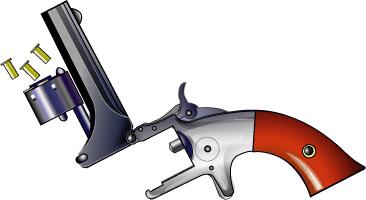 シリンダーは手動で回転させる。連発拳銃が多銃身で模索されていた頃、今日のような