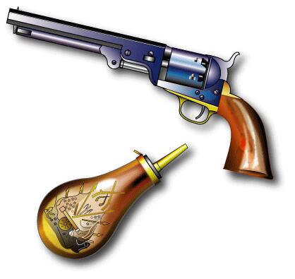 .36口径、6連発、8角銃身、全長33cm 初期型はトリガーガードが角。コルト・パーカッションで一番売れたモデル。 ローディングレバーにキャッチが付いた。サミュエル・コルト自信作。 のちの南北戦争でも両軍に多数使用された。 当時36口径の銃はみなNavy と呼ばれていた。 ちなみに44口径の銃をアーミーと呼ぶ。 この銃は、コルト・ロンドン工場でも生産された。 時期から言うとペリーが徳川幕府に贈った銃はこれと思われる。 |