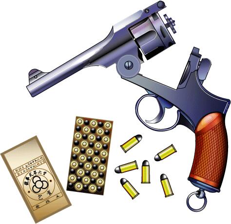 9mm、6連発、日本。明治26年、兵器の国産化を急ぐ陸軍に採用。