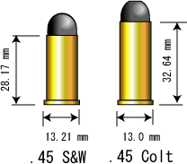 .45 SW 弾は.45コルトよりも短く、それ用のスコーフィールドのシリンダーは、.45 コルト弾は長くて