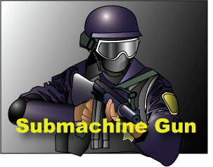 拳銃弾を全自動発射できる銃のことをサブマシンガンという。 ライフル弾と違い威力の弱い拳銃弾なので射程距離は短いがコントロールしやすく 短時間に多弾の発射が可能で近距離戦闘には欠かせない。 近年、軍隊では小口径突撃銃を使用するようになり、SMG は警察関係の犯罪者制圧などに 多く使用される。 |