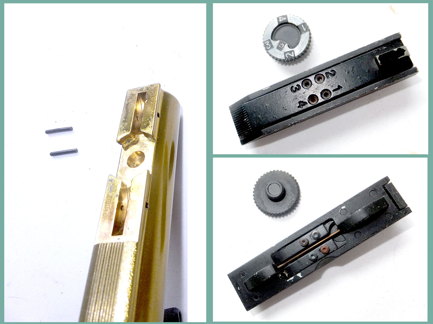 右写真のように1番が見えているときにいは、1番のイモネジに当たります。フロントサイトには棒状のバネで