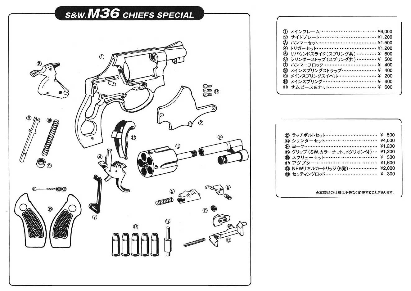 「真似のコクサイ」から「リボルバーのコクサイ」への変化が見て取れるチーフの1型から4型まで並べてみました。4回もモデルチェンジするとは、きっと社長には、何かこだわりがあったのでしょう。
