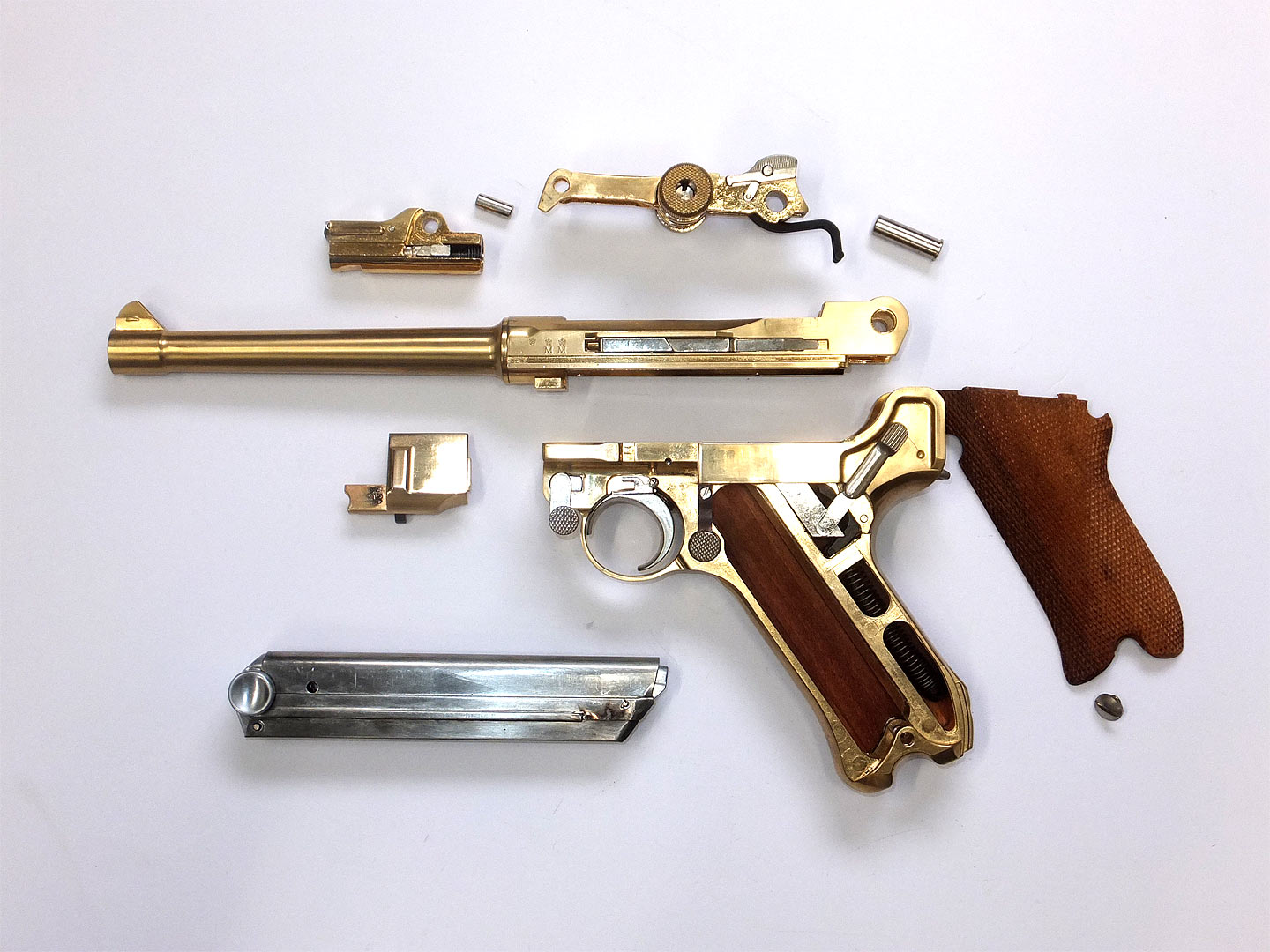 たしかに六研さんは、実物構造と違う形に作っていてマルシンさんも同じように作られています。 ネジを切った方が加工も簡単ですね。新見さんがおっしゃるように、六研の真鍮ルガーを原型としてマルシンルガーが 出来上がったのかもしれませんね。
