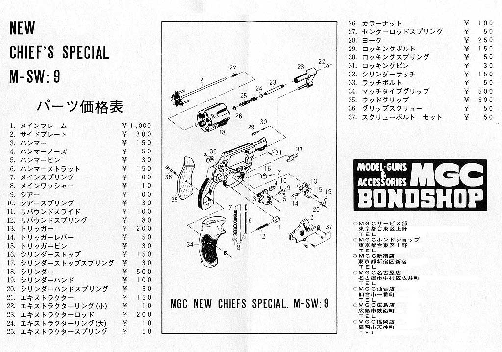 出典は忘れましたが、1965年のMGC ブローニングの乱により国際をはじめとする高級モデルガン組合と MGC は、決裂して、国際によるMGC チーフ他のコピー品製造販売が始まりましたが、やがて抗議するMGC と 手打ちが行われ、模倣品はやめろという主張が通りましたが、そちらもやめるのだからMGC も新型にしよう、 ということでMGC も2型チーフが誕生しました。コクサイも同時期に新機構の2型チーフになっています。