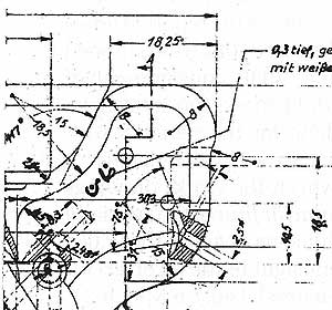 これは、実銃のエルフルト製からシムソン社製に見られる特徴なのです(一部製品に見られる)。本来は半径11mmのカーブで切削するところですが、初めてルガーを作るエルフルトでは、機械の整備の関係で うまく加工できなかった機械もあるようです。 別の部分でも本家のDWMに比べてエルフルトの方が、ややアバウトな切削も見られます。