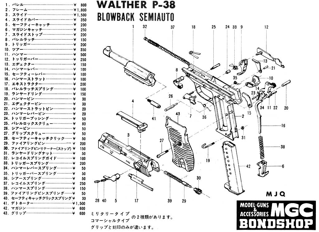 CMCのP38は、モーゼル社の戦争中暗号であるbyf 刻印の44でしたが、MJQは同じモーゼル社のそのあとの暗号名であるsvw の44