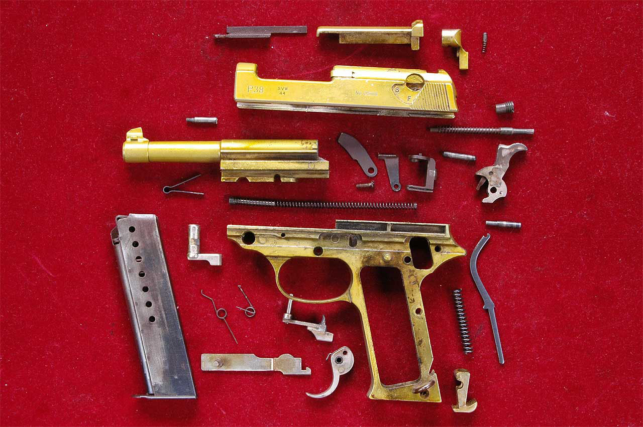 と、言うのもCMCの試作品も svw44刻印だったからです。写真は、1971年10月号(昭和46年)のGun 誌のCMC広告です。ステンとともに新製品のP38の試作品が載っています。アップ写真で判るようにsvw44刻印です。 しかし販売に当たっては存在が認められているbyf 刻印に変更されています。六人部氏は、どうして存在しない刻印を使用したのでしょうか?44と言う数字が好きだったのでしょうか? だとしたらbyf刻印の方が合っています。svwという字並びが好きだったのでしょうか?なんだかそうとも思えません。 想像を飛躍させると、フェイクかもしれませんが、実銃の取材でsvw44刻印を見たのではないでしょうか?その時に超珍しいと教えてもらって 特別な刻印だと捉えたのかもしれません。