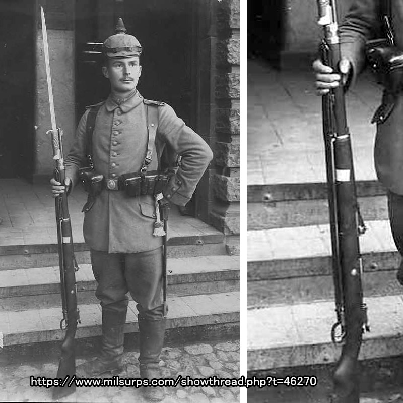 この兵隊さんの写真にあるように、写真撮影時のスリングはピシッと張られていないといけなかったようです。にしても長い銃剣ですね。