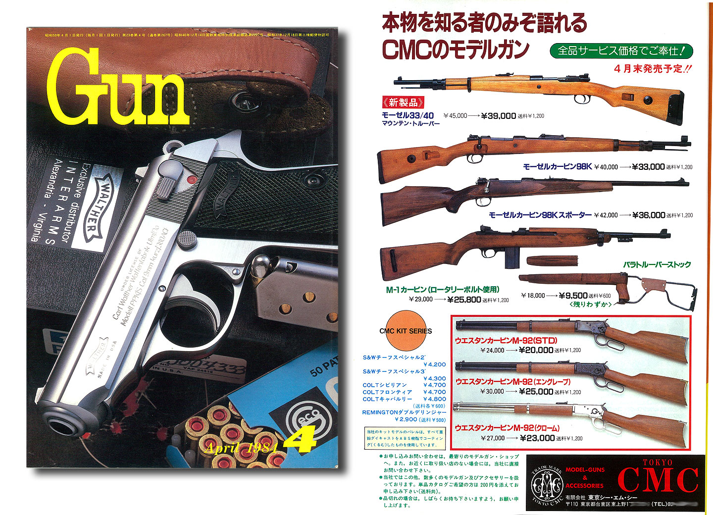 この広告は、Gun誌 1979年11月号 に載ったものです。キヨノアームズさんが、CMC K98 をカスタムして販売していました。