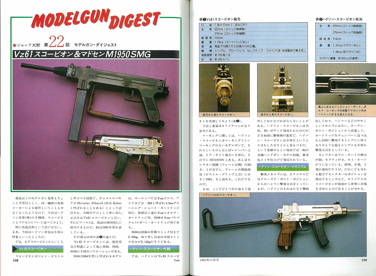 1981年11月号のGun誌 記事です、ジャック天野(根元 忠)さんが記事に取り上げています。マドセンとほぼ同時発売でした。