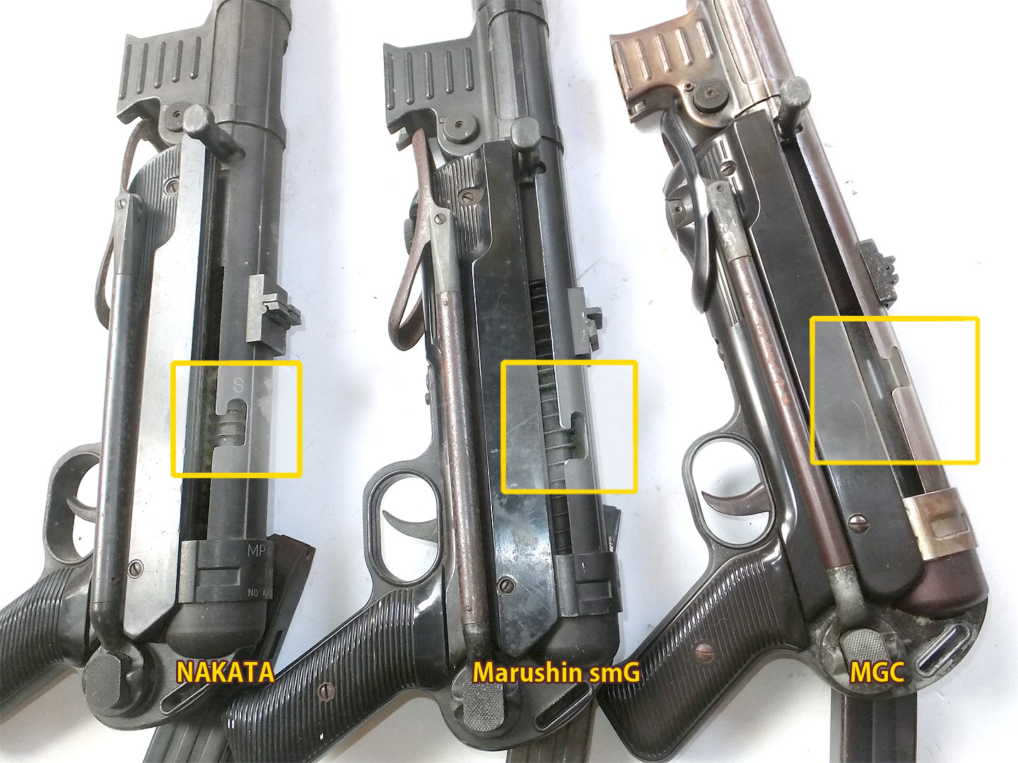 写真は、マルシンが作っていた規制前の中田製とsmG型を並べています。