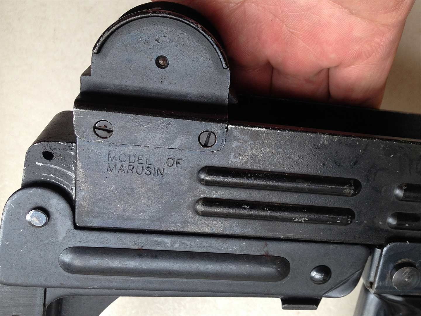 上写真は無発火処理された実銃の写真です。こうして見るとマルシンのウージーは実物そっくりに作られていますね。
