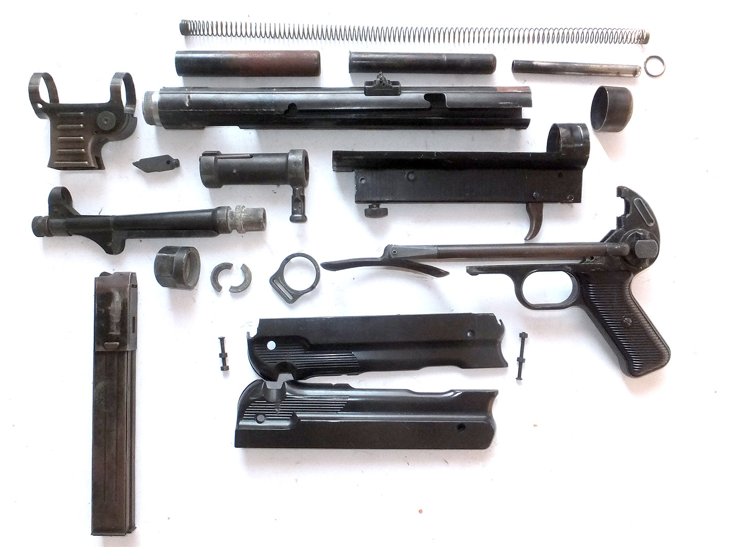 レストア依頼でお預かりしているものなので、マガジンガイドもバラされています。通常は、エジェクターピンが