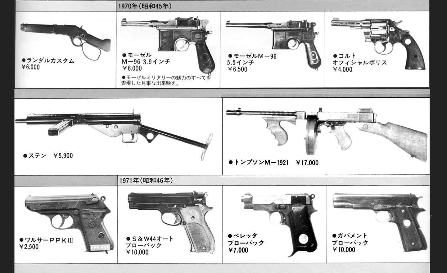 右写真は、1979年(昭和54年)と思われるMGC カタログから取ったものですが、実際のカスタム製品は少し変わりました。