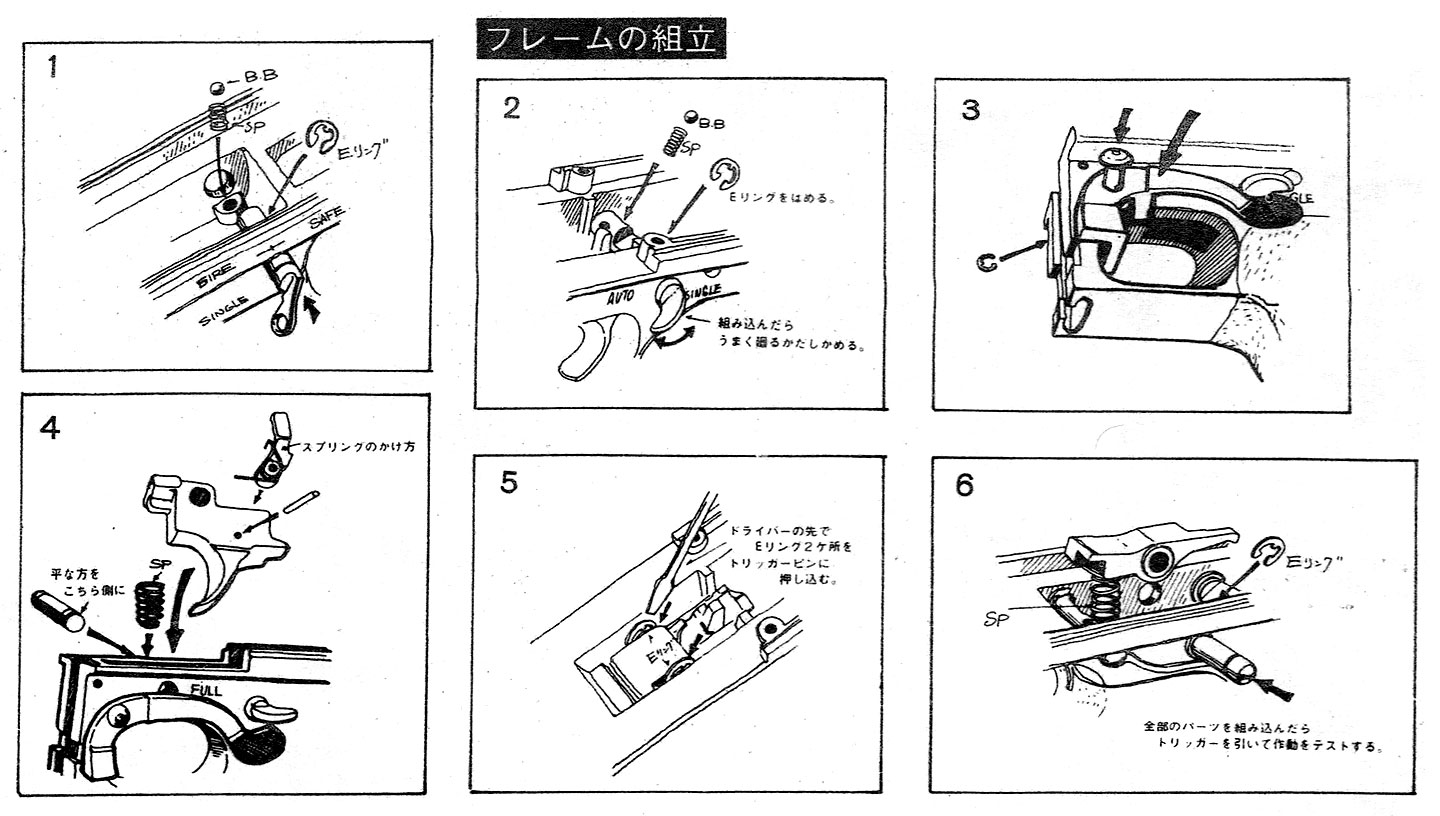 2番のパーツのネジが下から止められています。レシーバー上面がすっきりで格好よくなっています。