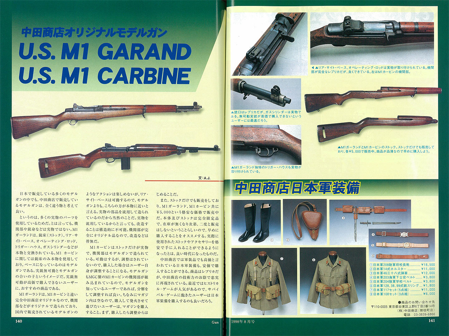 1998年8月の記事ですが、ここではガーランドとM1カービンのみ紹介されています。 広告ではなく、記事扱いです。価格は書いていません。