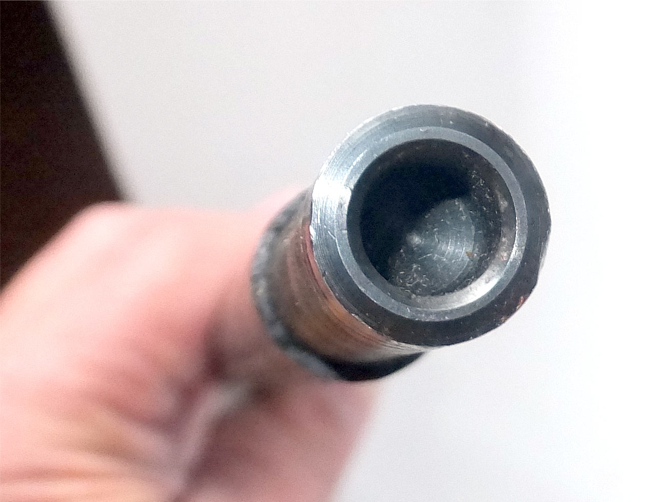 バレルは、単なる鉄の棒です。ガスシリンダ・プラグを受け止めるネジやサイト部とかみ合う3本のミゾなどは存在しません。