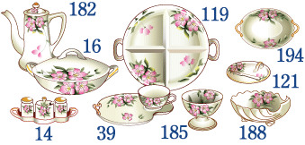 総個数は57個と変わらないが183番のディナーカップが無くなり 363番が追加された。