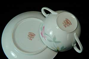 また、ソーサーに裏印があるのはノリタケの食器の中でもこのマークの物だけである。 このことから見ても