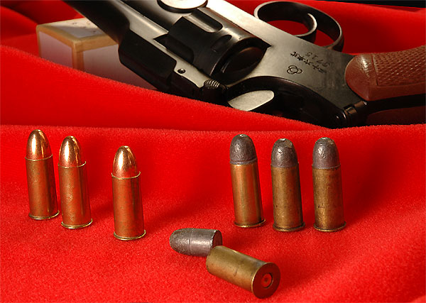 38スペシャル改というのは、写真小道具用に38スペシャルのケースを金のこで切ったものである。38スペシャルのリムが厚いのがわかるかな?