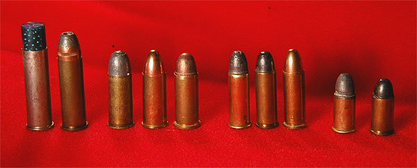 右は、26年式拳銃オリジナル弾4発。左側は戦後のミッドウェイ社製造のレプリカ弾3発。