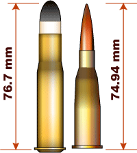 チューブ式弾倉のレベルライフルに使用されている頃は、弾頭先端は平らであった。 ボディー径が大きくリムド形式のレベル弾はライフルには、たくさん入れられないし 機関銃などは大きなリムのため設計しにくく1934年には、リムレスの7.5mmx54 弾に 変更されている。