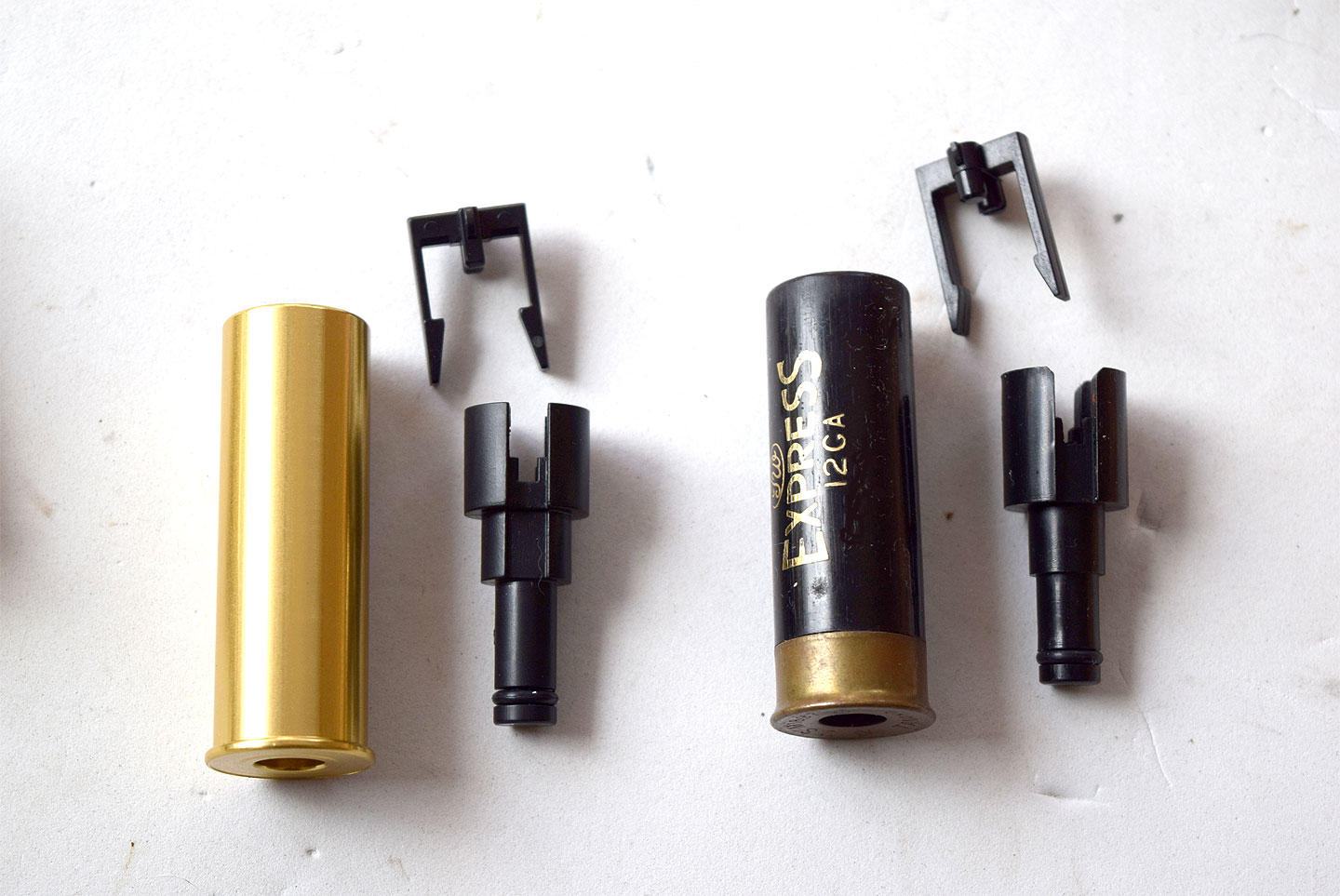 真鍮ケースは、長いのがわかるでしょうが、チャンバー的に問題はないのかと思われるかもしれませんが 散弾銃のカートは、発射後は口が開くためにケースが長くなるので真鍮ケースのように長くても何の問題もないのです。