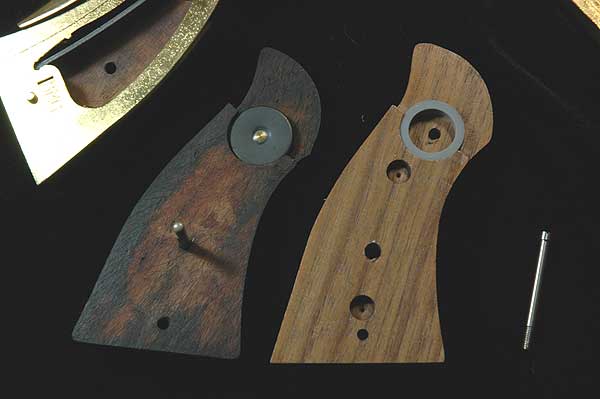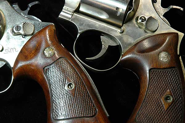 S&W リボルバーの中で古いもののグリップは、ネジの部分のチェッカーをひし形に残してある。
