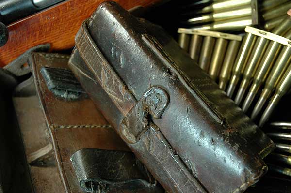 前盒には、このようにクリップつきの弾薬が30発収まる。7.7mmになっても弾薬盒はそのまま使用された。