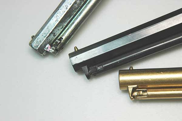 CAW の物は、実物の構造をきちんと再現していて感激ものだ。 このバレルにあるキーもちゃんと生きている。 昔の金属モデルガンは、MGC もマルシンもモールドのニセモノだった。